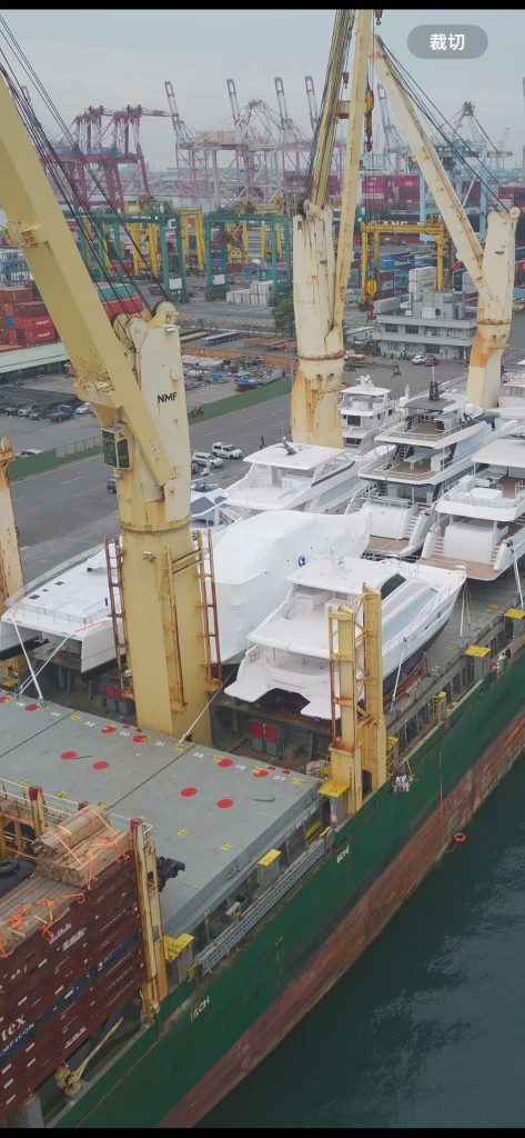 As the Chinese Lunar New Year approaches, Jet-Tern Marine Shipyard is bustling. In the relatively mild winter of southern China, on an early morning in early February, the gentle sun shines upon the ripples of the sea. A large barge carries a white yacht Selene 6420, wrapped in heat-shrink package, heading toward Hong Kong. The AAL shipping company, after arriving in Hong Kong, proceed to Taiwan, joint a fleet of newly built boats from Taiwan and set sail together from Taiwan to USA.